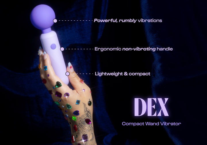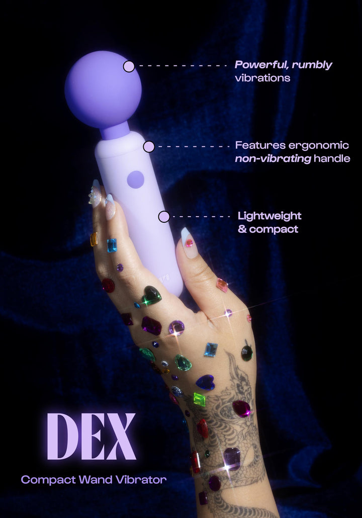 Meet Dex: small in size, big on power. This travel-friendly, compact wand vibrator delivers deep, rumbly vibrations with 4 speeds and 4 unique patterns, all controlled with a single, no-fuss button.